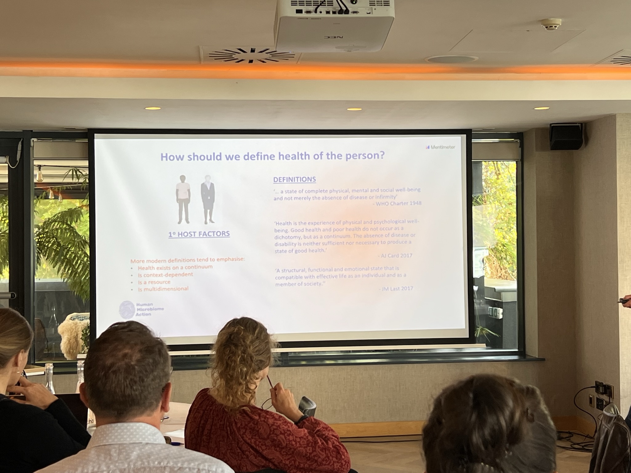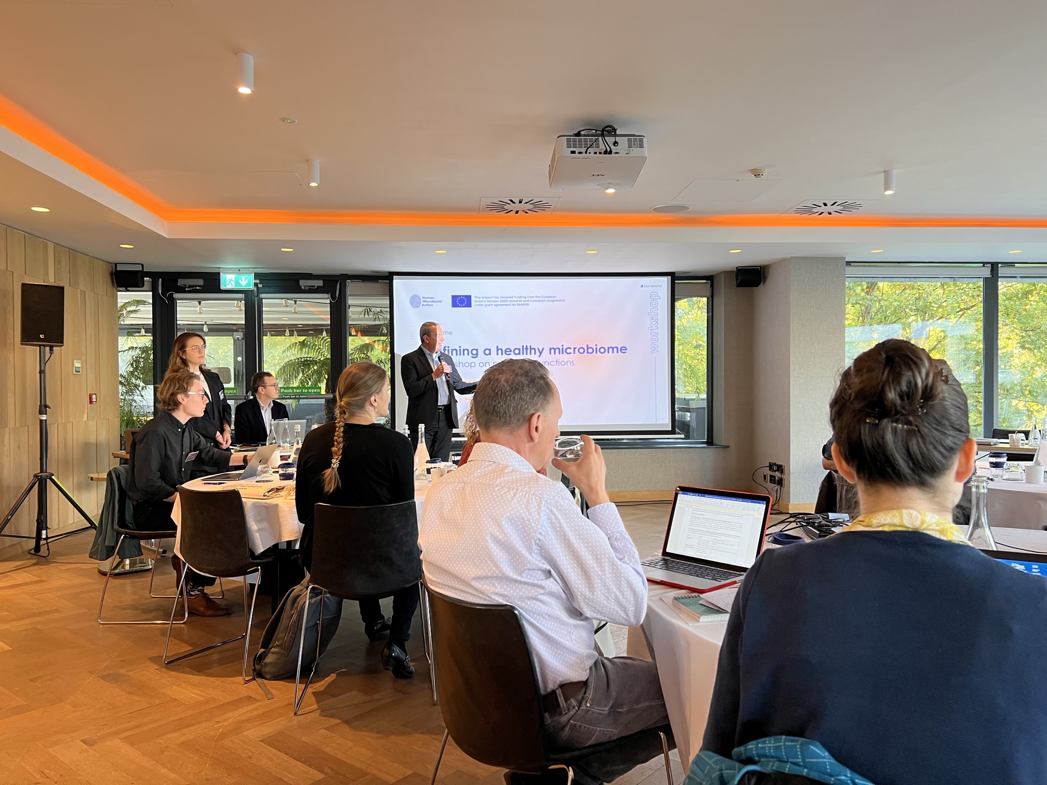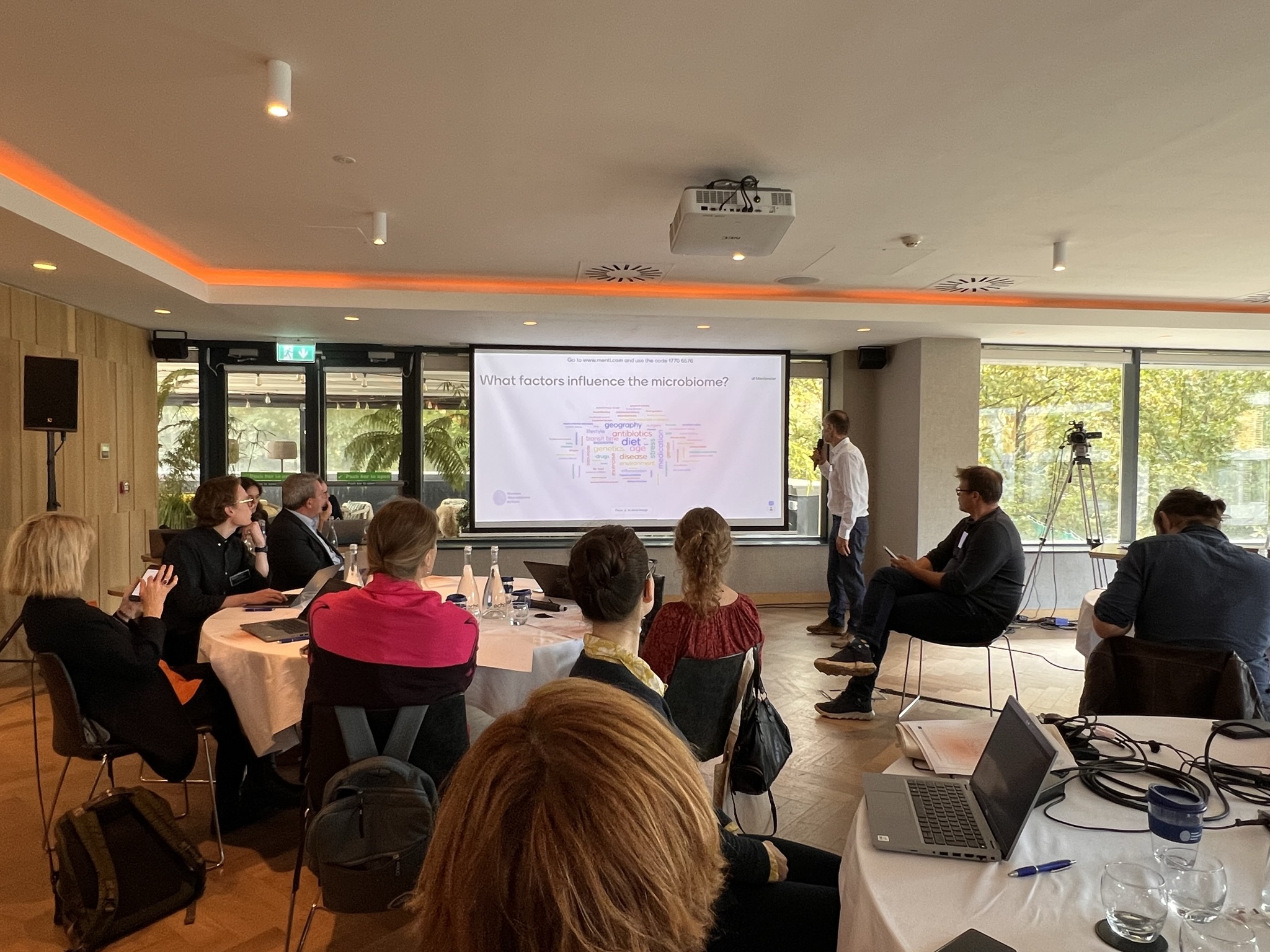 The objective of the event was to gather experienced scientific leaders in the field to discuss the future of microbiome research. Initially, the focus was on definitions of health in humans and microbiomes, how and when to sample and what is the motivation for defining a healthy microbiome. This included gauging the current state of microbiome science, including methodologies, current data and findings, as well as missing links and gaps in knowledge. Progress was made on how to fill these gaps, discussing the study design and essentials for future microbiome studies. After each session, interactive software tools were used to collect input from the participants. These items will be analysed in the upcoming weeks and months and will lead to the primary outcome, a white paper with recommendations to shape the future microbiome research informing the European Union.